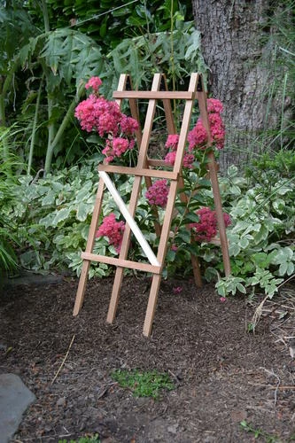 A utility trellis like no other–this 30 inch Folding Trellis is made from natural western cedar with unique decay resistant properties and hinged with rust-free vinyl straps. All joints are glued and stapled for rugged durability. Cedar has no added chemicals and is therefore ideal for organic vegetable gardening including tomatoes, peppers, small climbing vines and even herbs. The trellis serves equally well as support for decorative vines and flowers and may also be extended flat and hung or mounted on a wall for a full 60? climbing surface (mounting hardware not included). The trellis may be painted or stained if desired. The trellis is made in the USA.