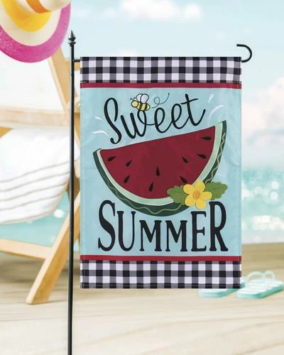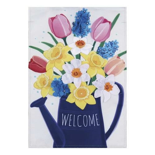Decorate your garden with these colorful 12.5″ x 18″ applique flags. They are made of durable 310 denier nylon and stitched tightly to add dimension and durability! Choose from the following 6 bright and colorful designs: Spring Flower Watering Can Garden Burlap Applique Flag, I Love My Dog Garden Applique Flag, HOME Lavender Wreath Garden Burlap Applique Flag, Welcome Y’all Polka Dot Flowers Garden Burlap Applique Flag, or 5 O’clock Mason Jar Drinks Garden Applique Flag.