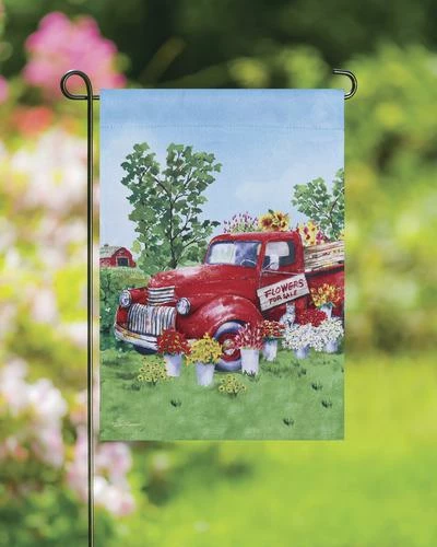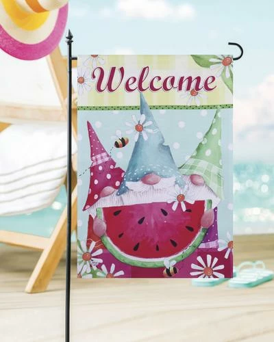 These 12.5″ x 18″ Enchanted Garden Flags will brighten up any home. Charming and inviting, they provide your guests and neighbors with a warm welcome! These will add a punch of summer to your garden, porch, and yard. Choose from the following 8 designs: Red Flower Truck Garden Suede Flag, Watermelon Gnomes Garden Suede Flag, Floral Bicycle Chicks Garden Textured Suede Flag, Patriotic Pup Garden Suede Flag, Bloom Where You’re Planted Garden Suede Flag, Patriotic Stripe & Star Garden Sub Suede Flag, Cardinal Family Garden Suede Flag, or Boxwood Wreath Chalkboard Garden Suede Flag.