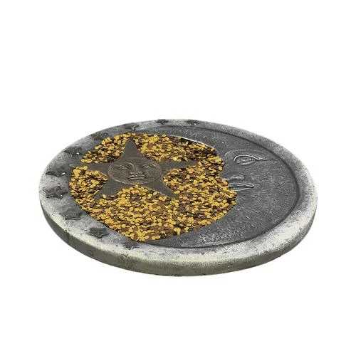These beautiful stepping stones sparkle when the sun shines upon the glittery gold flakes. The stepping stones are made from durable cement and are available in three designs.