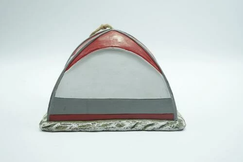 Birds that are looking to get away can hide out inside this cute little tent. This birdhouse features a campsite with a chair, cooler and a blazing fire! A great addition to your outdoor decor