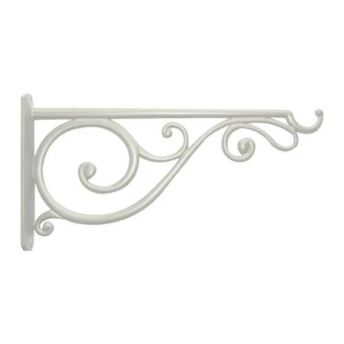 This 14″ off-white plant bracket features Victorian scrolls that highlight this cast aluminum plant bracket to display any hanging basket up to 16″ in diameter. A scroll at the base of the bracket creates a large curl with smaller curls jutting from it. The powder-coated finish protects the bracket from rust.