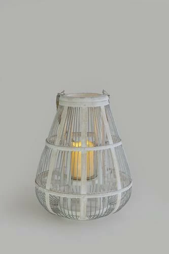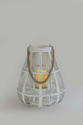 Decorate your outdoor space with this modern farmhouse white lantern featuring a jute rope handle. This lantern is also a great addition to any front porch to give your home a welcoming appearance.