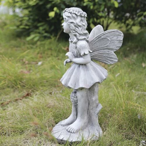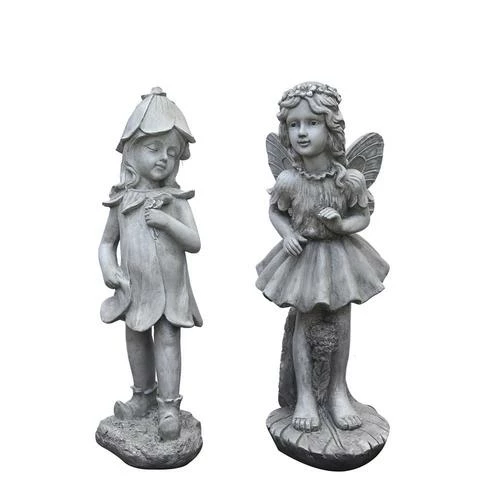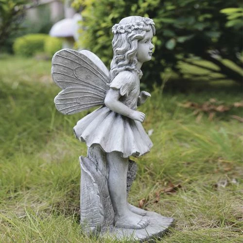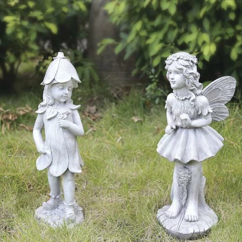 Feel a part of a fantasy with The Enchanted Garden Fairy statuary. Choose from 2 different designs; a fairy with hat and a fairy with garland. The neutral tones match almost any decor. Perfect for your garden or a table setting. The resin material holds up for many seasons. Made out of polyresin. Easy to care for, just wipe down with a damp cloth. Be sure to bring indoor during harsh weather.