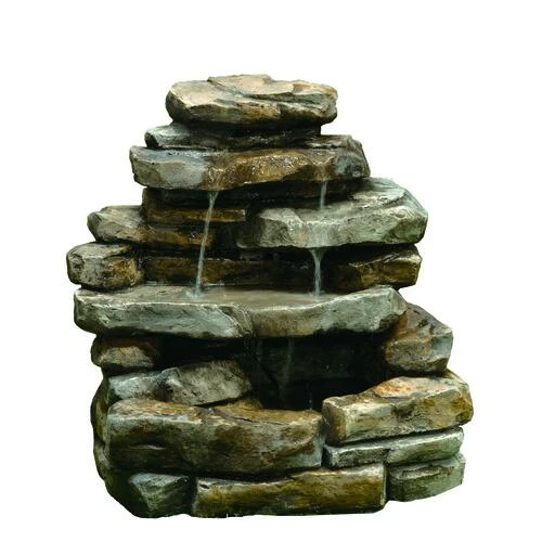 This Faux Rock Cascading Fountain will create a relaxing ambience for your outdoor area. Rocks are stacked and staggered like nature’s waterfalls. The strategically positioned rocks guide the water from one pool to the next.