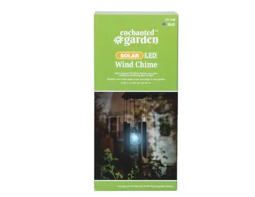 Multicolored LED lights brighten your yard, creating an enchacing glow at night. This butterfly wind chime adds music and magic to your garden. This solar wind chime will progessively change from red, green, blue, yellow, and shades of colors in between.