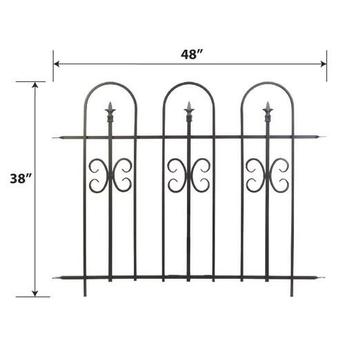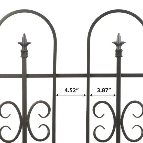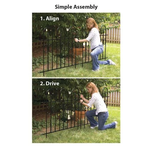 The Broadway Border Fence provides an easy-to-install, functional and decorative fence for a walkway, garden barrier or yard. To connect to panels simply line up the holes on the fence panel, slide a post through and tap the post into the ground. This border fence features elegant arches and finials with decorative scrollwork to add elegance to any yard. The panels are galvanized inside and out before powdercoating for long lasting durability. The Broadway Border Fence will provide years of low maintenence servce!