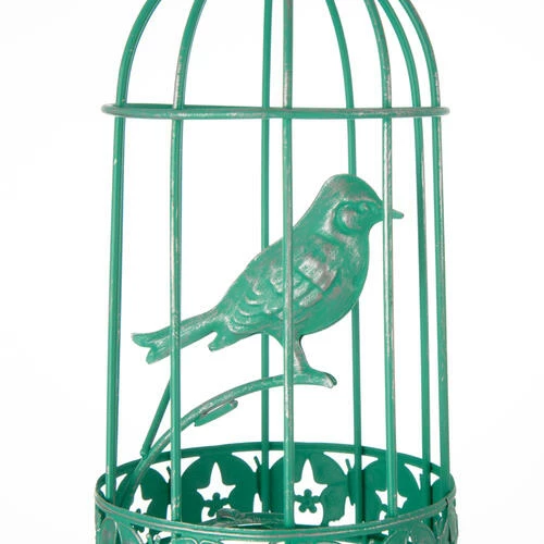 - Turquoise or white bird cage (sold separately)
