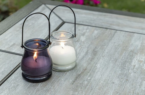 The lantern jar citronella candle is a beautifully decorative citronella candle, yet a very effective defense against biting mosquitoes utilizing 3% citronella oil and 6.5 oz. white wax in the candle. The candle is 4″ H x 3.5″ diameter, and there are four assorted colors to choose from: Red, Blue, Green or Yellow.