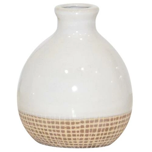 There is just something about a simple bud vase that makes such a big impact. And this classic two-tone, white, ceramic vase and its crosshatch design in a creamy, neutral hue, fits that bill perfectly with a fresh, farmhouse feel. Adorn it with a single, faux-flora stem for a burst of color or with a subtle faux-branch of greenery for instant warm and elegance. Practical in its versatility, it can literally be displayed in every room in your house. Tuck it into a bookshelf, angle it on the corner of a desk, or perch it on a shelf in the laundry room…the options are limitless and it will never look out of place. And, for an even more dramatic look, group together with its coordinating pieces in varying sizes.