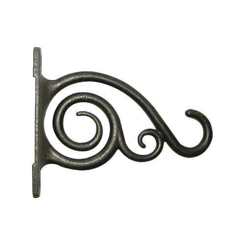Inward and outward scrolls highlight this cast aluminum plant bracket to display any hanging basket. The powder-coated finish protects the bracket from rust.