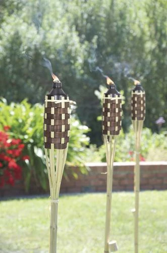 The basket weave on this bamboo torch adds a flair to your yard decor! Place these in soft dirt, or sand filled buckets to distribute around the yard, or along a walkway. Fill the 16 oz. cannister with a citronella oil to enjoy the benefits of added light and mosquito deterrent. These Bamboo Torches come with a long-lasting fiberglass wick. Add a feel of celebration and fun to your yard with these 5 foot Bamboo Torches!