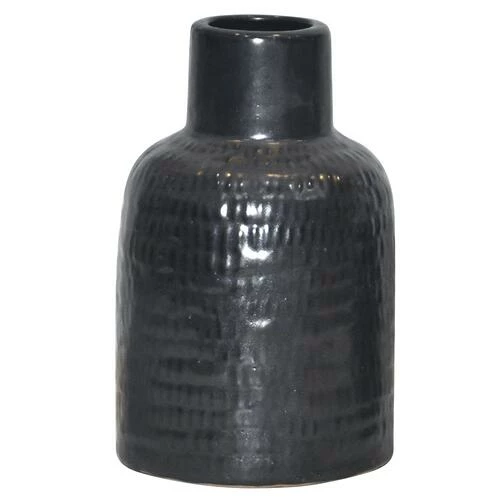 Simple yet dramatic. Bold yet understated. This ceramic vase, with its stark, black hue and modern feel, is perfect for a single, faux-flora stem for a burst of color or a subtle faux-branch of greenery for instant warm and elegance. It will certainly command attention wherever you display it and is as much at home in the bedroom as it is in the mudroom (and any and every room in between)?talk about versatility.