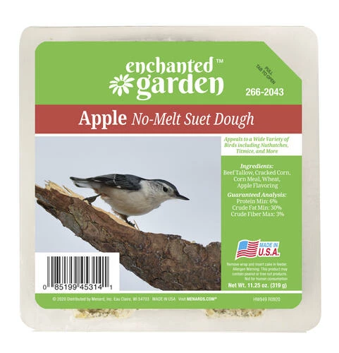This apple-flavored blend is perfect for year-round feeding. It attracts these colorful songbirds: cardinals, chickadees, goldfinches, juncos, kinglets, nuthatches, purple finches, siskins, tanagers, thrushes, titmice, warblers, woodpeckers, and wrens.