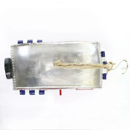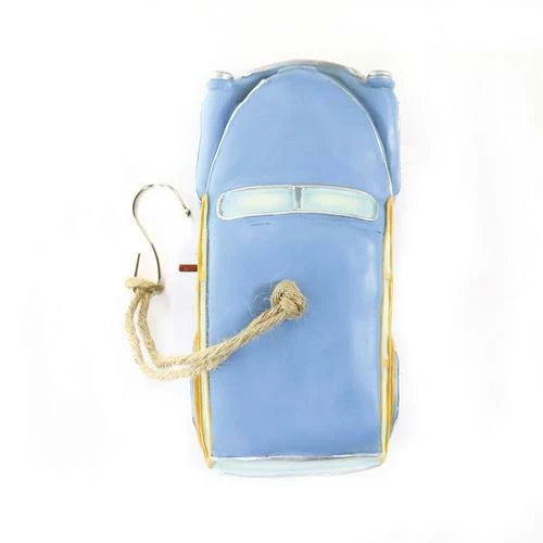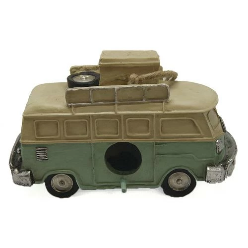 Birds will flock to these vehicle-shaped birdhouse. Made of polyresin material, painted in charming colors, and hung with a rope.