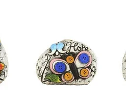 This decorative cement stone features vibrant designs that evoke the feeling of spring. Features hand painted colors and stone texturing. Button accents give a handcrafted feel.