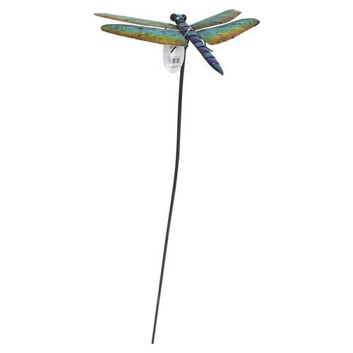 - The dragonfly stake is attached to a metal post by spring, so it sway in the breeze like a real dragonfly.