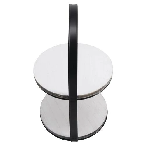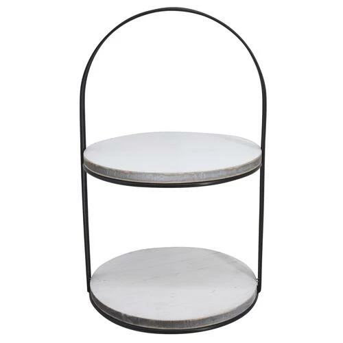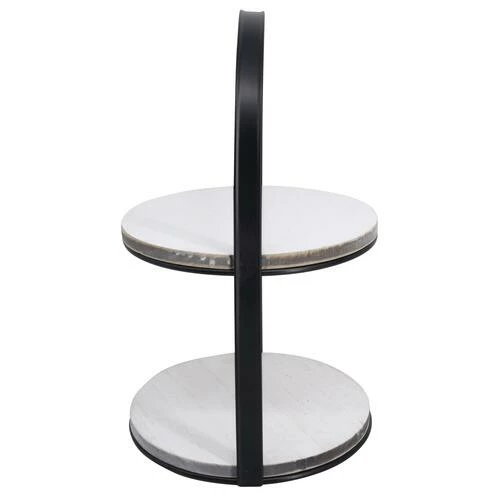 Add some practical style to your home with this 2-tier serving tray that can present food or decor with casual style. The serving stand features two round wooden bases set on a black metal frame.