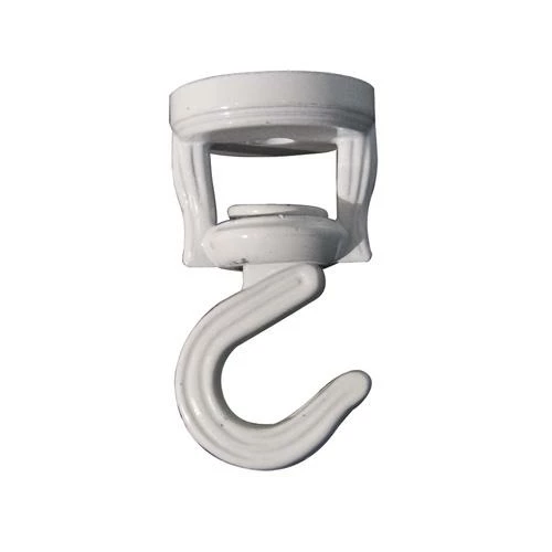 This white swivel ceiling hook can be secured into a wood ceiling or exposed beam. The powder-coated finish protects the hook from rust.